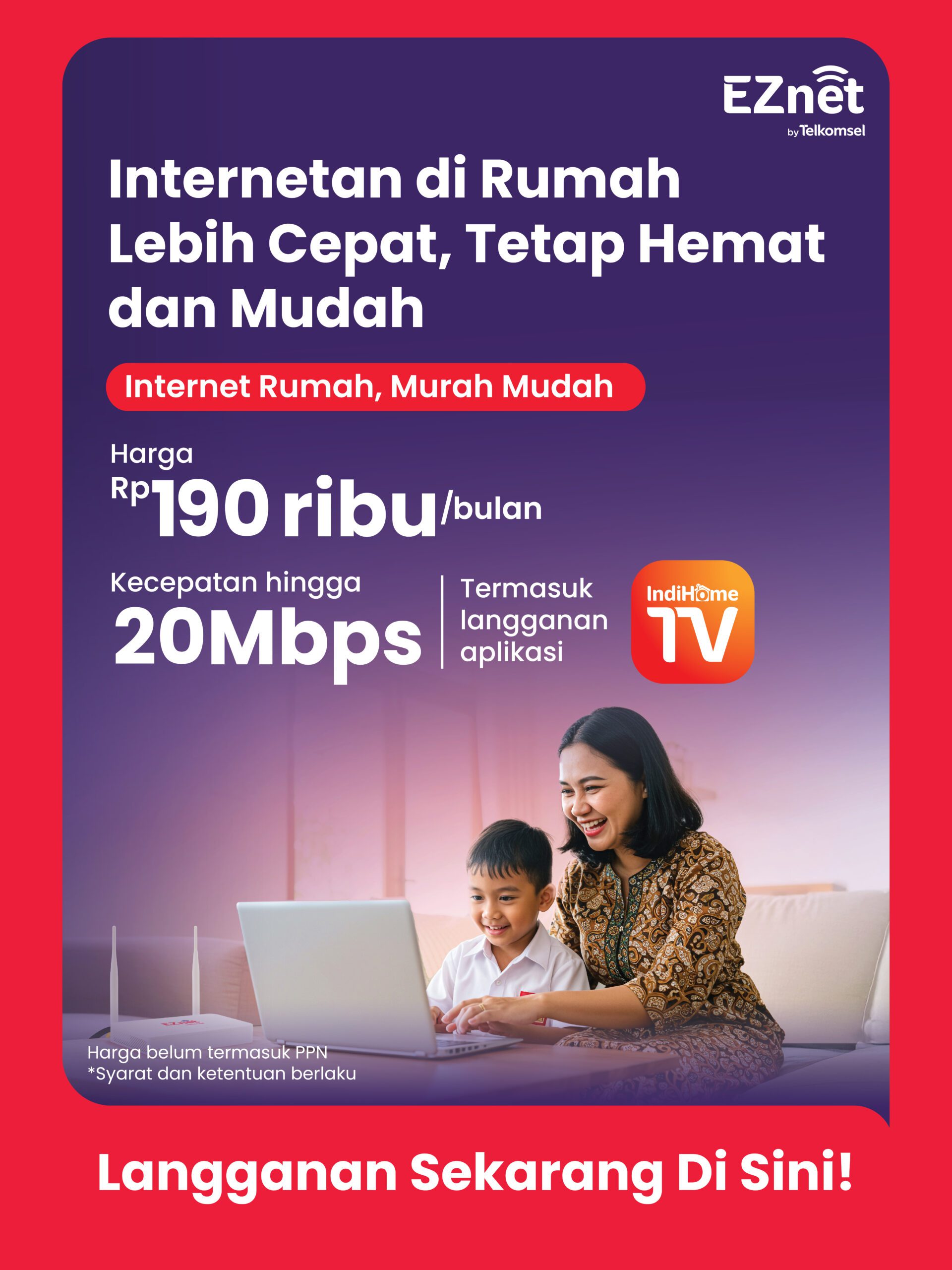 Bebas internetan dengan nyaman, mulai Rp150.000 untuk seluruh keluarga.